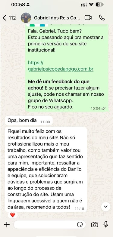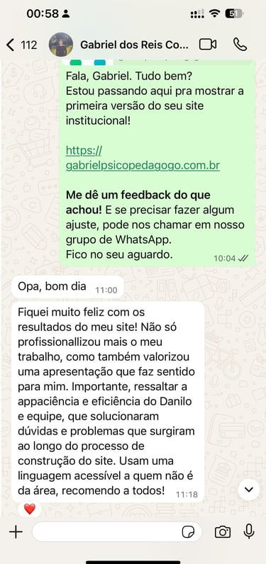 Em poucos dias, entregamos o site totalmente pronto e funcionando, com tudo configurado (domínio, e-mail, segurança, etc.).